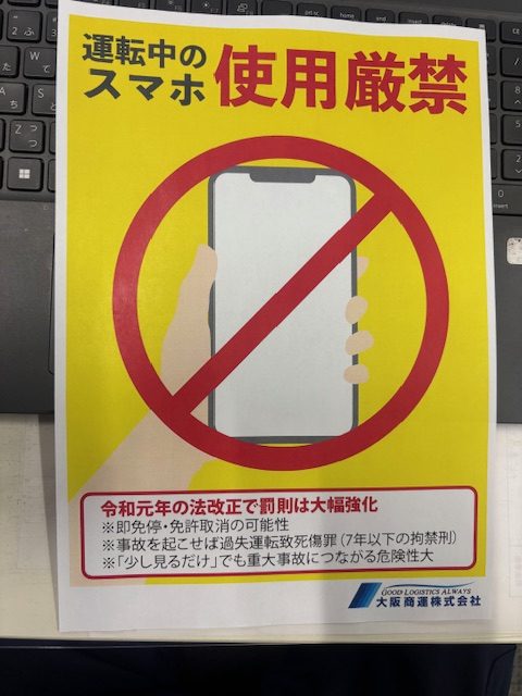 来週の安全ポスターは運転中のスマホ使用厳禁です。