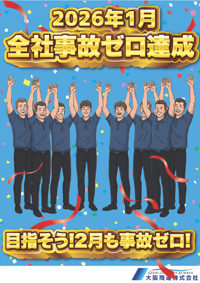 1月度は皆さまのお陰で全社事故ゼロを達成することが出来ました。