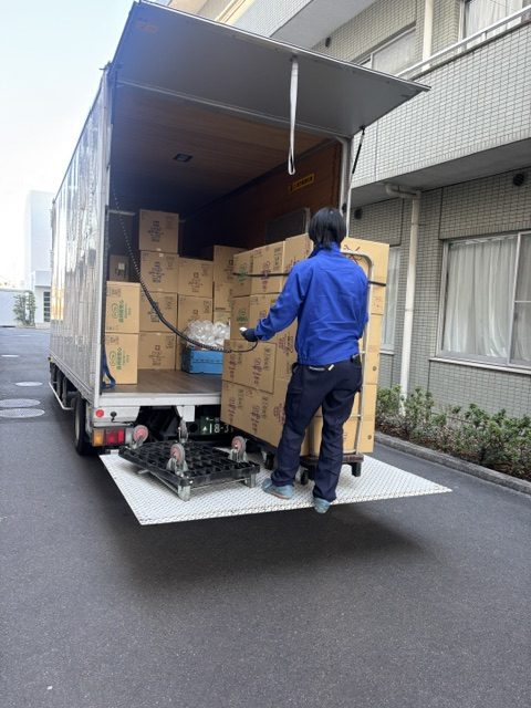 安全指導教育も終わり、パワーゲート車に先輩と同乗して